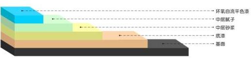 5.面 涂:用鏝刀將環氧樹脂自流平面料鏝涂于中涂之上(參考用量0.8-1.5 kg/㎡)。